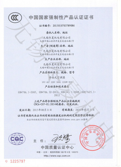 近日,开云网页版页面登入-开云(中国)的移动工业冷气机、暖风机产品7个型号取得了中国质量认证中心颁发的3C强制认证证书。